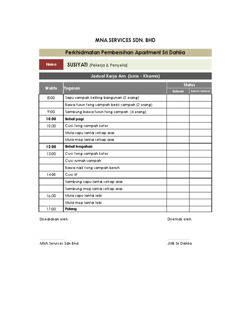 Jadual Kerja Pembersihan Jmb Sri Dahlia 2019 Pdf
